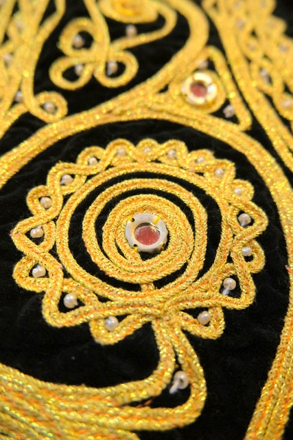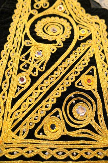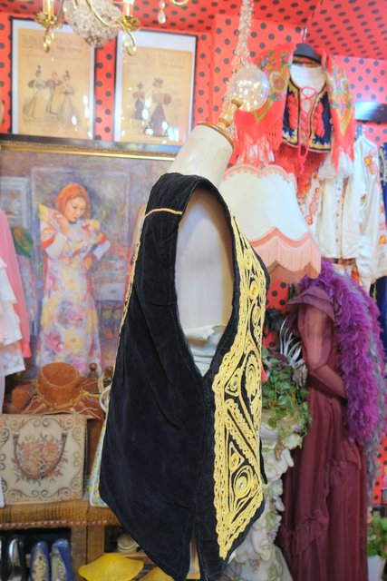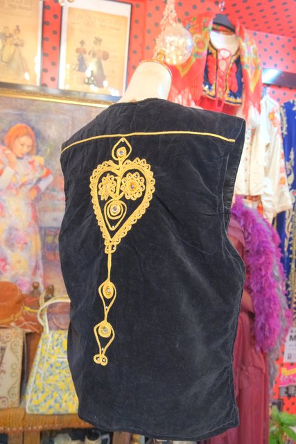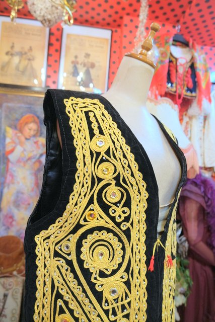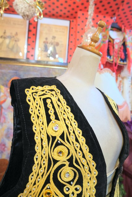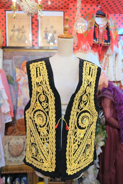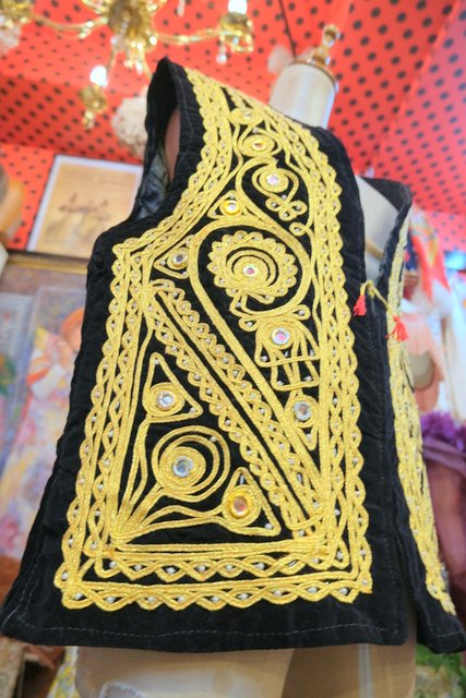 華やかな印象の黒ベロアにインパクトたっぷりのゴールドテープ刺繍×ミラーデザインが魅力的なパキスタン製レトロヒッピーベスト