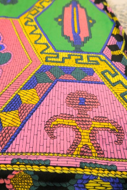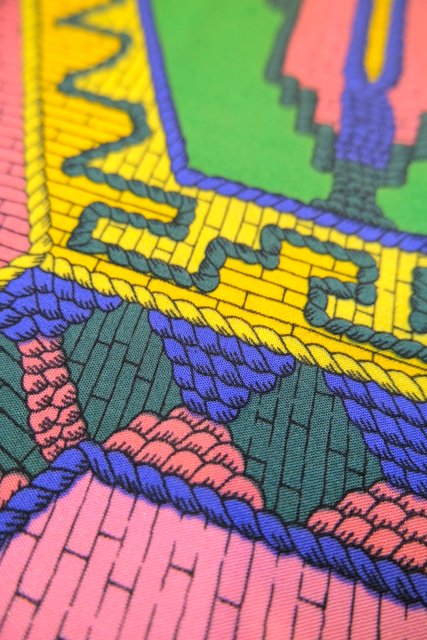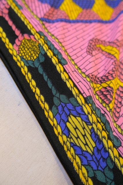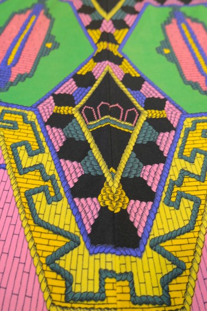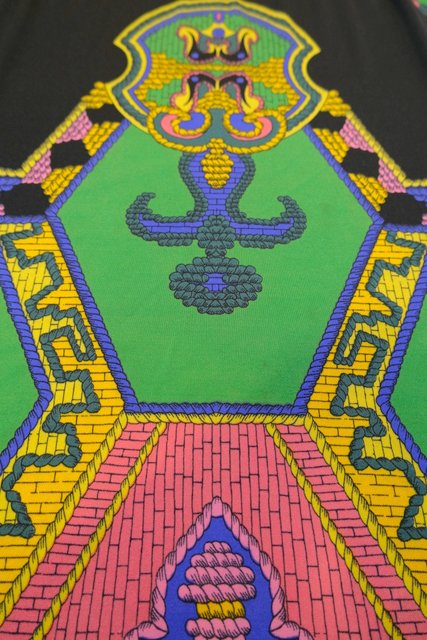 大人エレガンスなテロっと感に目を惹くサイケデリックなロープ編み込みカラフルプリントが魅力的な1970年代頃のヨーロピアンヴィンテージロングドレス