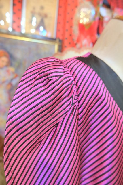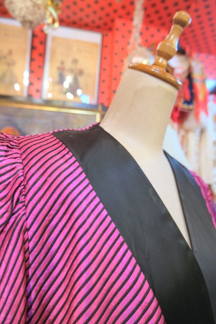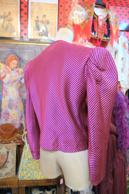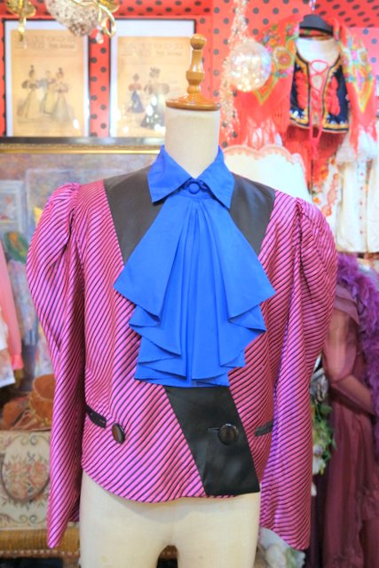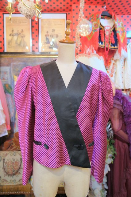 エレガントな光沢感があるシルク生地にボリューミーなパフスリーブやショート丈がカッコ可愛い1980~90年代頃のフランス製LANVINヴィンテージジャケット