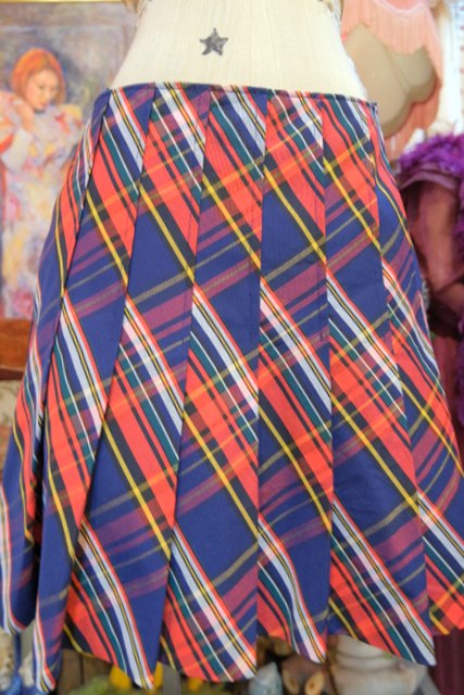 スイスの二重糸構造により緻密な表面、鮮やかな発色が魅力的な1970~80年代頃のヨーロピアンヴィンテージチェックスカート