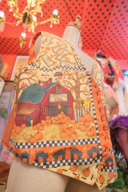 ポップで可愛いカントリーハロウィンプリントが魅力的なヨーロピアンハンドメイドベスト