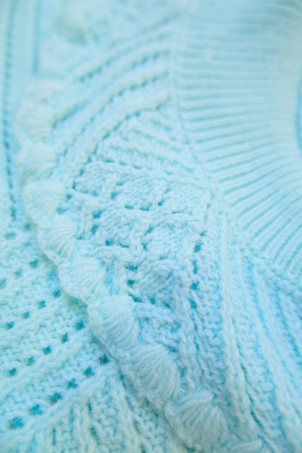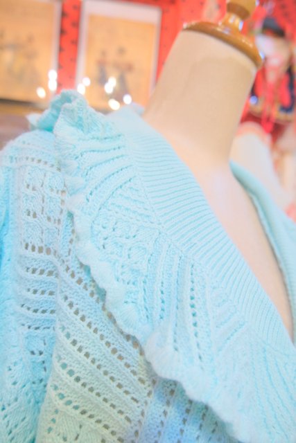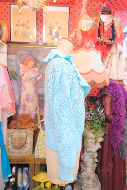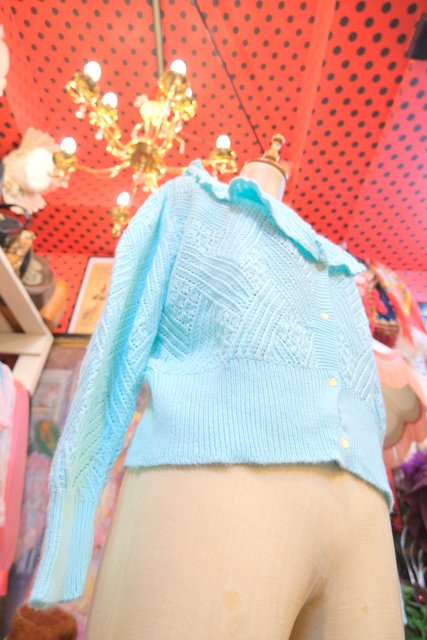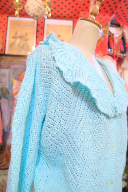 メルヘンな水色ベースにフリルカラーが可愛らしい1970年代頃のヨーロピアンヴィンテージカーディガン