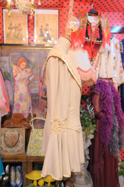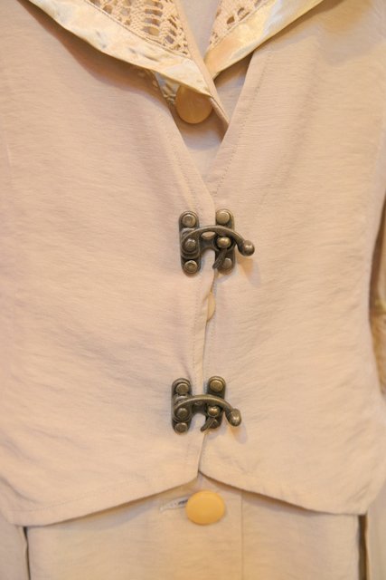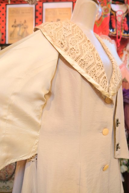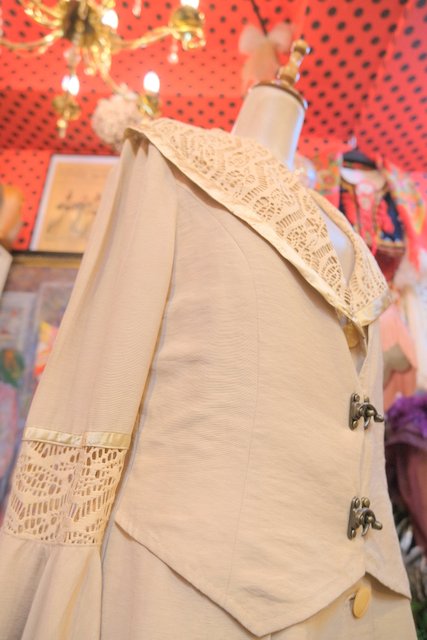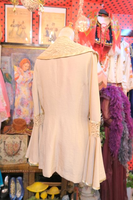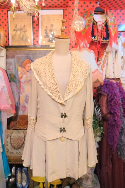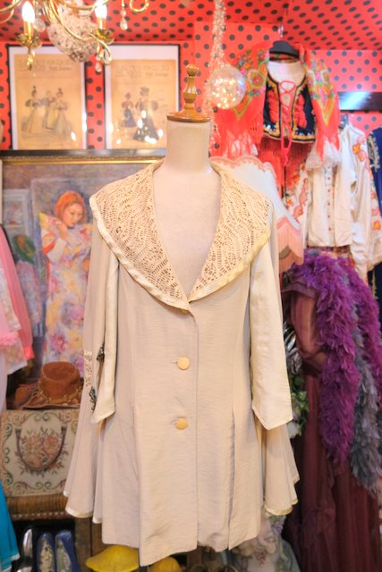 大きなレース襟やフレアカフス、レトロ金具付きのレイヤードデザインがお洒落なヨーロピアンヴィンテージジャケット