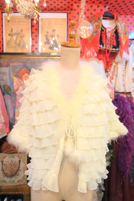 ヨーロッパ古着70sファー付きフリルネグリジェ羽織
