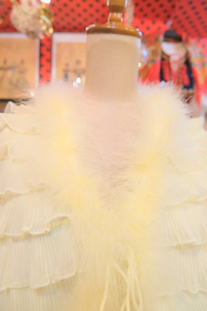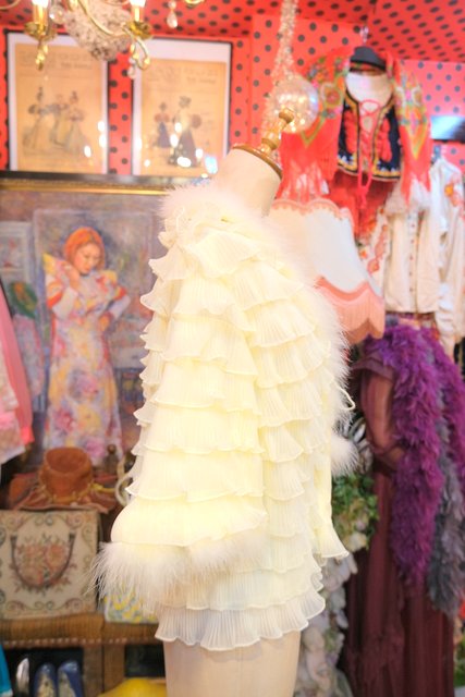 ボリューミーなティアードデザインにふわふわしたフェザー付きが可愛らしい1970年代頃のヨーロピアンヴィンテージネグリジェ