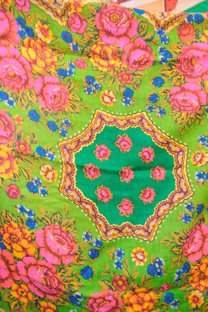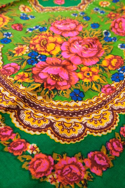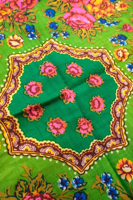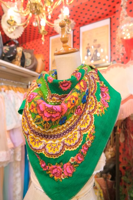 アンティーク感漂う花柄模様×華やかなグリーンベースが魅力的な1970年代頃のヨーロピアンヴィンテージチロルショール