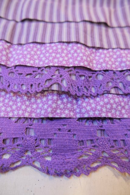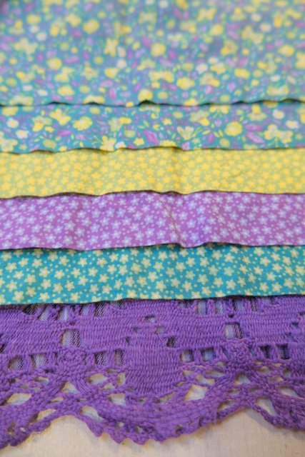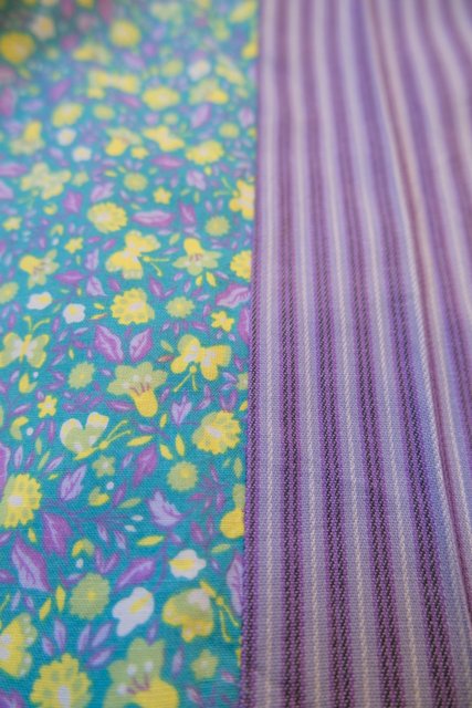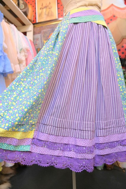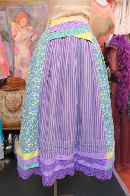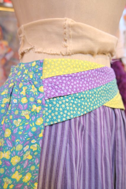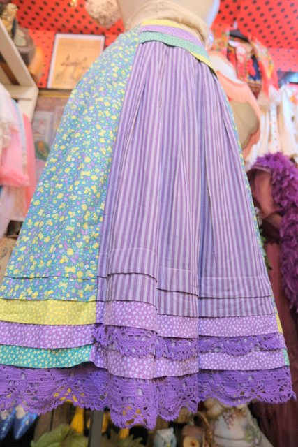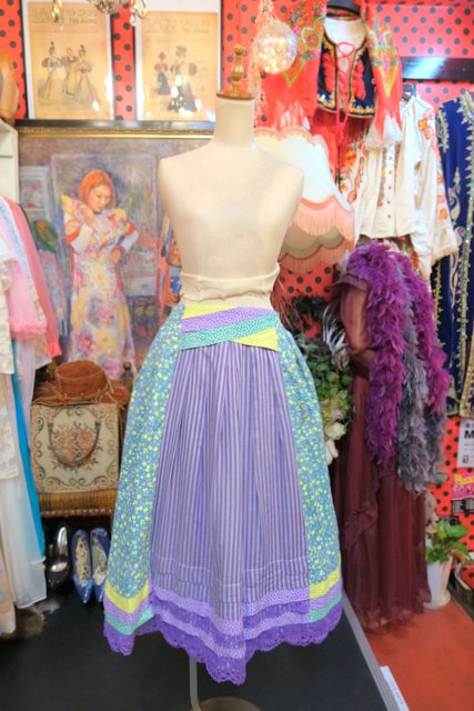 蝶&小花柄×パープルストライプ×星のような花柄パッチワークにレースデザインが可愛らしい1970年代頃の旧西ドイツ製ヴィンテージロマンティックスカート