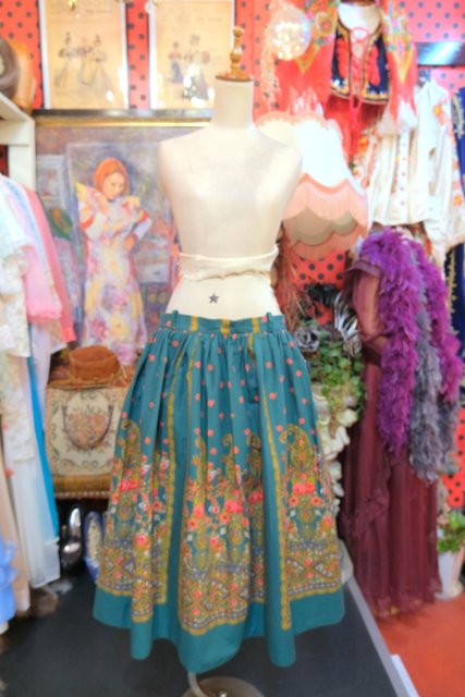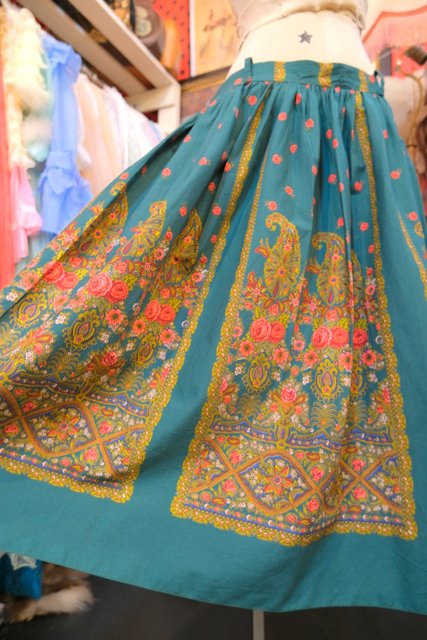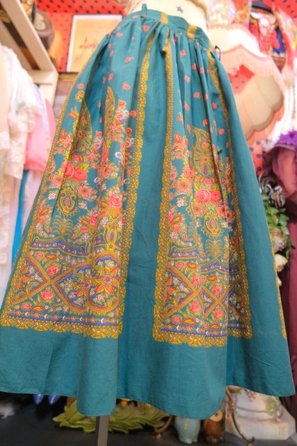エレガントな花柄やサイケデリックなペイズリー模様のバンダナモチーフが魅力的な1970年代頃のヨーロピアンヴィンテージスカート