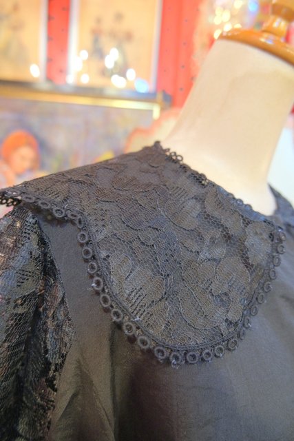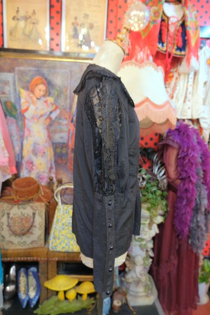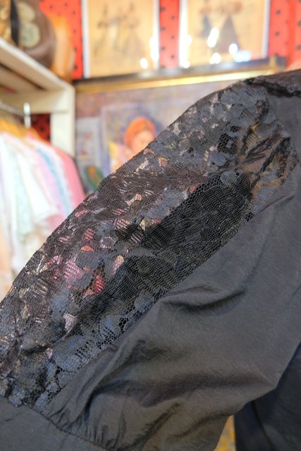 ヨーロッパ古着エレガントゴシック黒レースブラウス