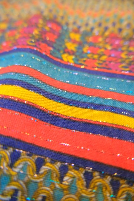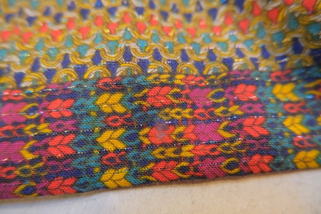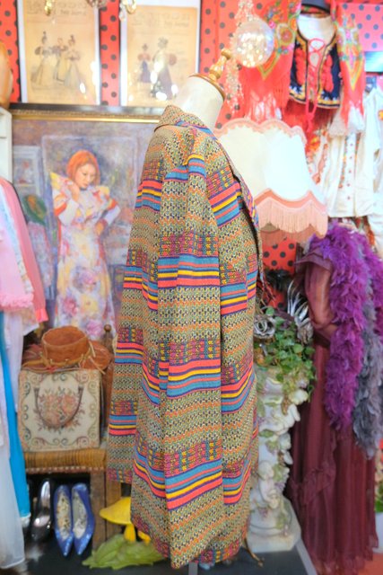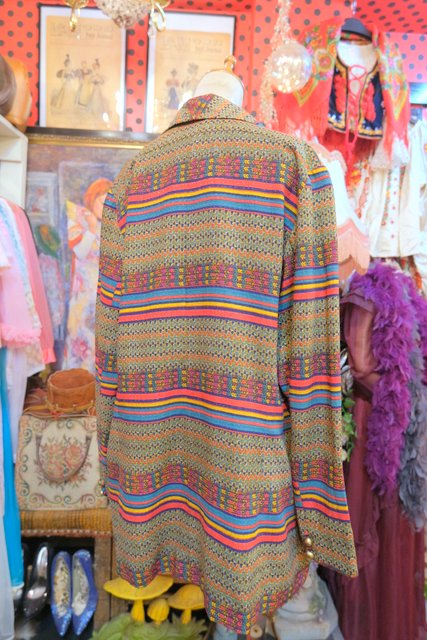 メタリックなラメライン入りのカラフル縄模様やボーダープリントがお洒落な1980年代頃のヨーロピアンオーバーサイズジャケット