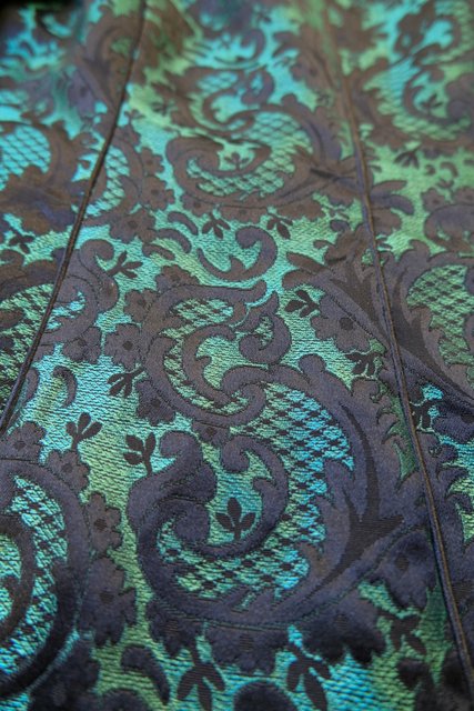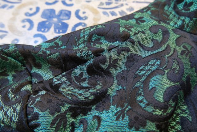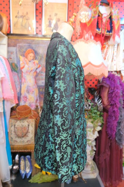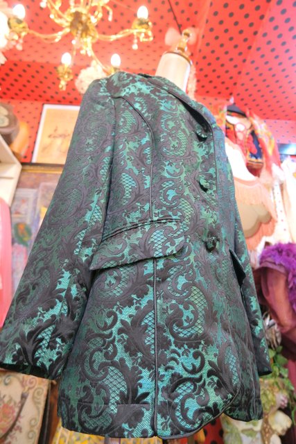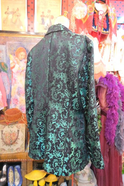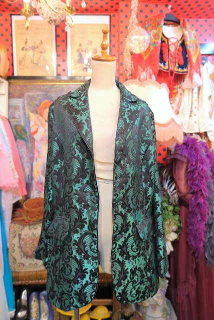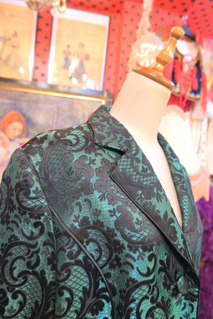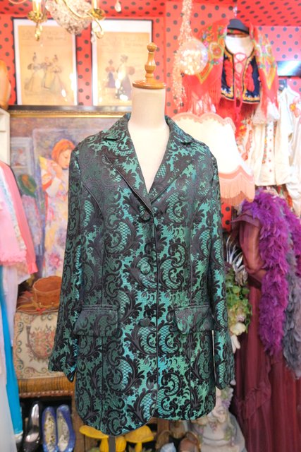 光沢感があるグリーンベースにエレガントゴージャス模様が目を惹くヨーロピアンヴィンテージジャケット