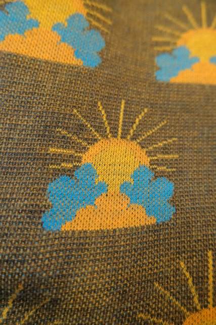 レトロポップな太陽柄にウエストデザインが可愛らしい1960~70年代頃のヨーロピアンヴィンテージ台形スカート
