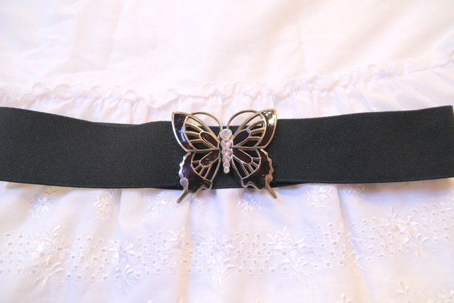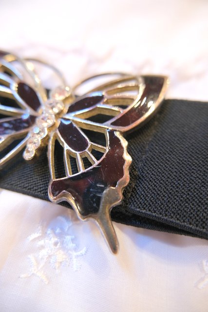 シンプルクローズのアクセントにおススメ!キラキラ輝くビジュー付きの蝶バックルが魅力的なヨーロピアンウエストマークベルト