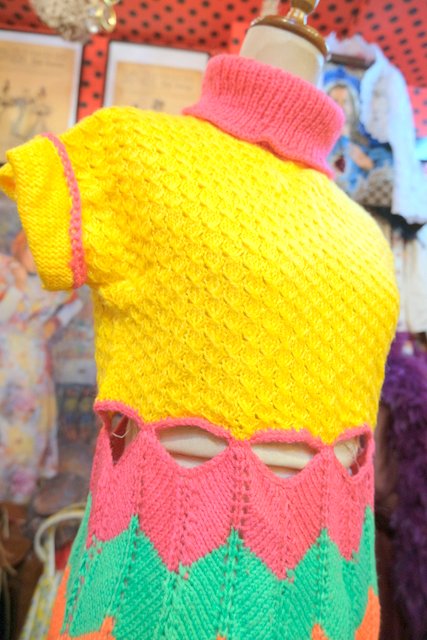 カラフルポップなカラーデザインに透け感が可愛らしいヨーロピアンハンドメイドデザインニット ★SALE★