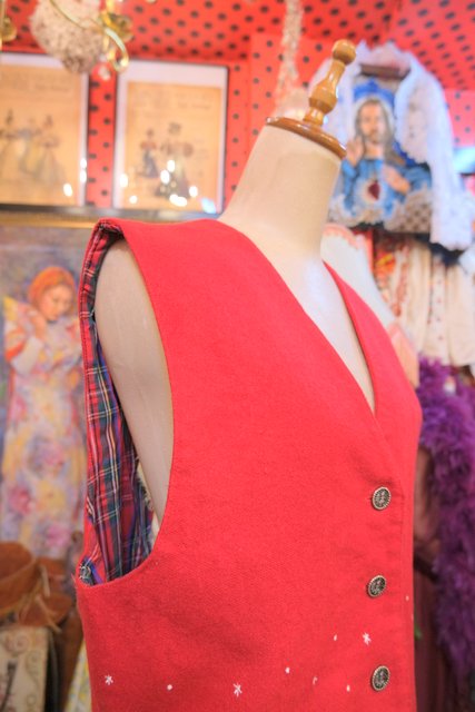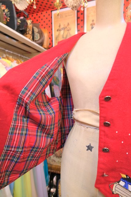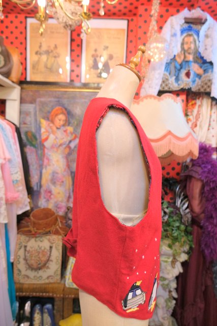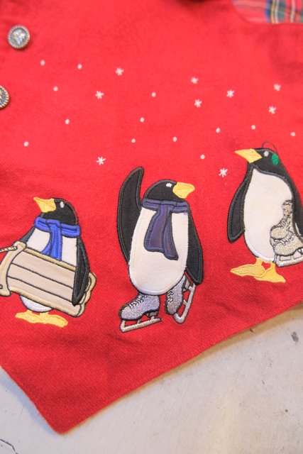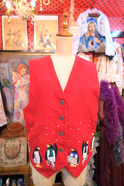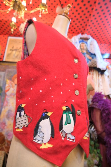 ヨーロッパ古着レトロポップペンギン柄ウールベスト