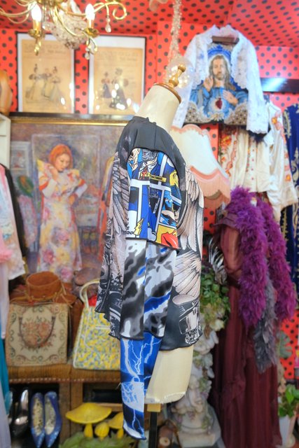 ヨーロッパ古着70sフランス製レトロポップ水玉シャツ
