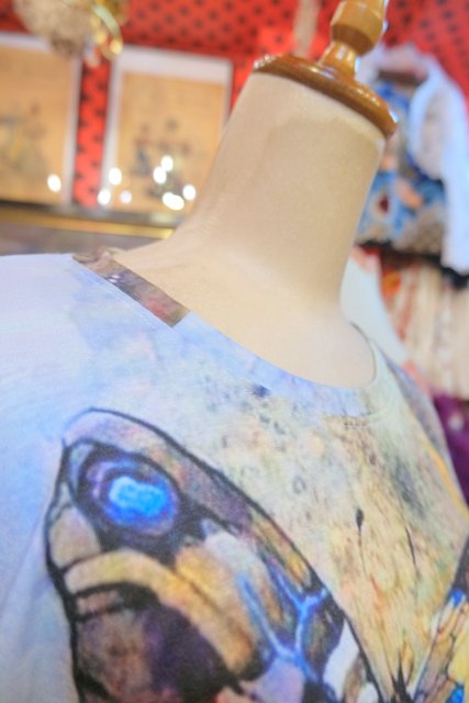 伸縮性のある異素材ドッキングデザインがユニークでインパクトたっぷりのヴィンテージリメイクカットソー ブラウスやタートル、シャツワンピースと合わせてもお洒落な個性派アイテム!