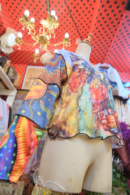 ヨーロッパ古着カラフルパッチワークリメイクトップス