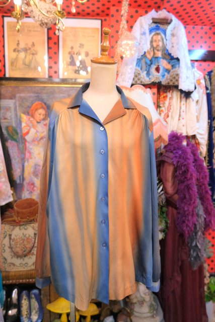 ヨーロッパ古着80sオーロラカラーレトロブラウス