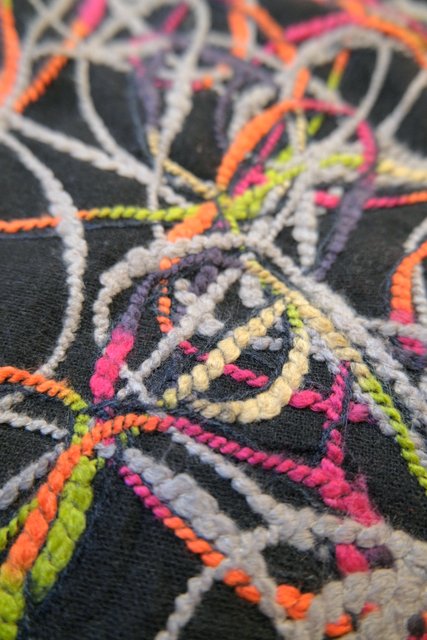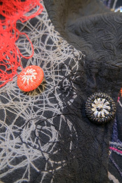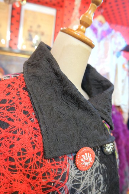 エレガントな花柄ジオメトリック柄にカラフルな毛糸刺繍や大きなボタンがお洒落で個性的なヨーロピアンデザインコート