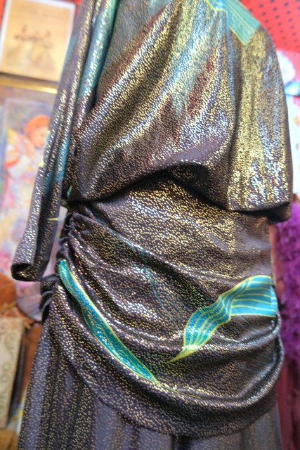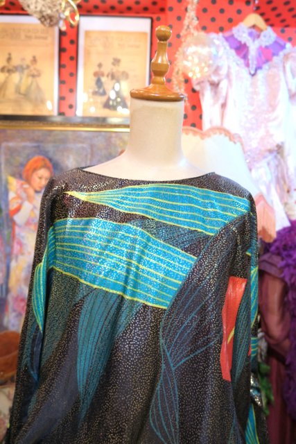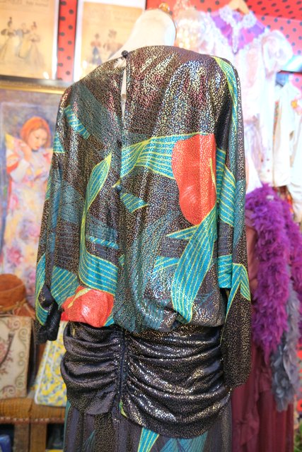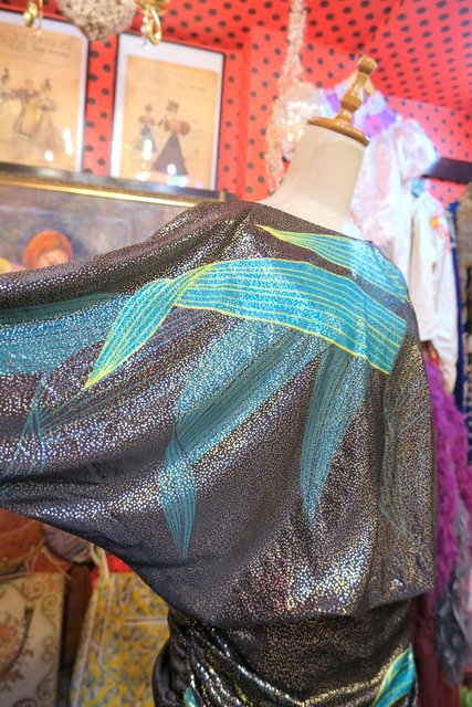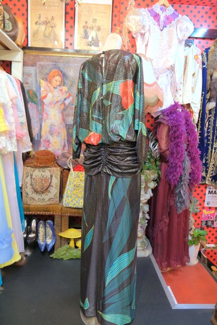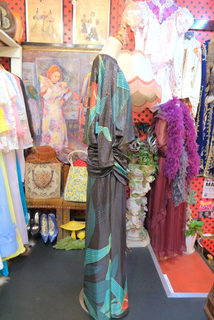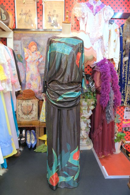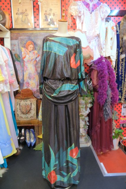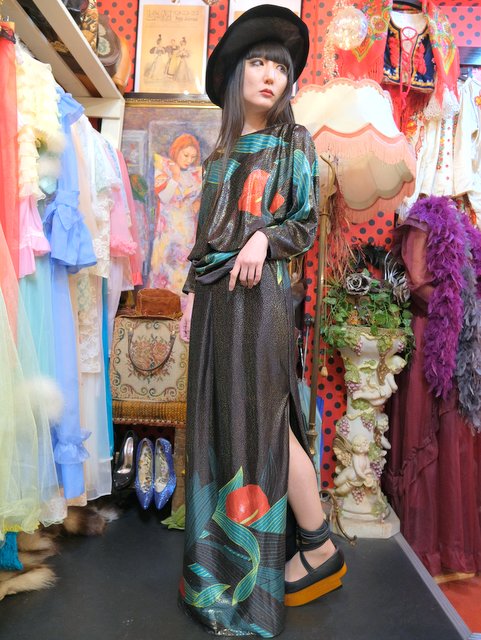 大人エレガンスなテロっとした落ち感にキラキラ輝くメタリック×エレガンスなアンスリウム柄が目を惹く1970年代頃の旧西ドイツ製ヴィンテージロングドレス