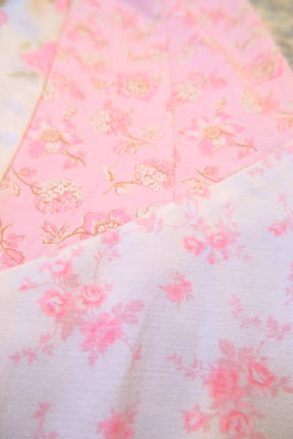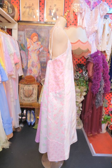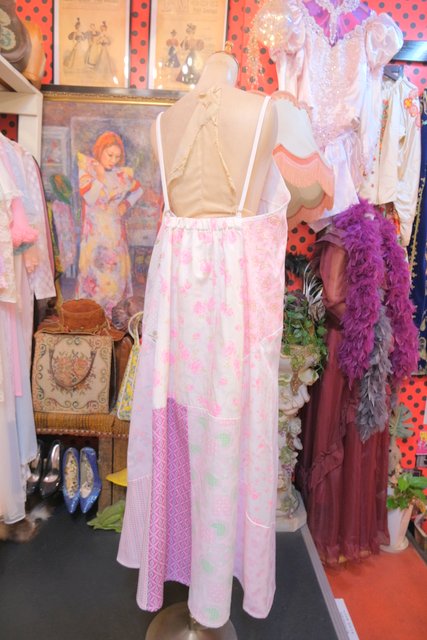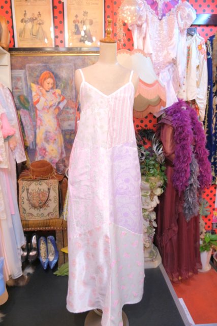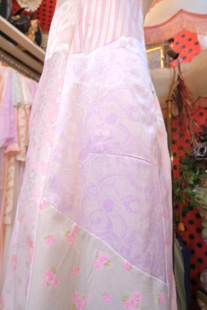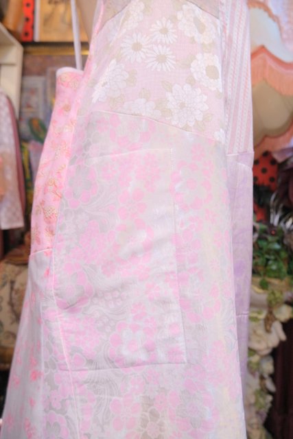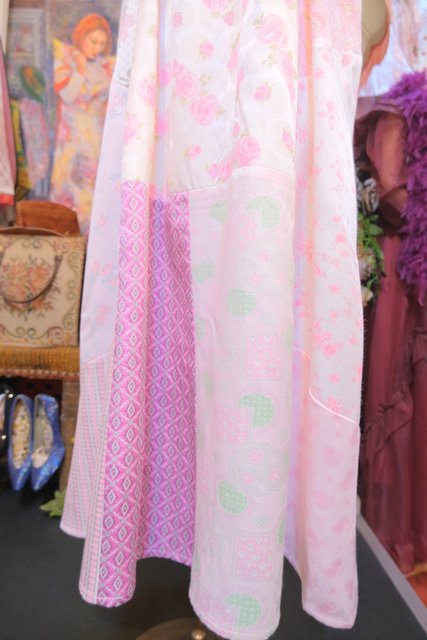 ロマンティックガーリーな1970年代頃のユーロヴィンテージ生地パッチワークデザインが乙女心をくすぐる世界に一つだけのメルヘンワンピース Tシャツやブラウス、ニットなどと合わせると可愛いオールシーズン活躍してくれるガーリーアイテム