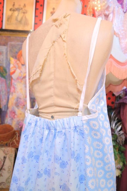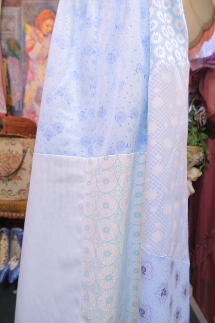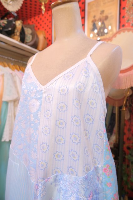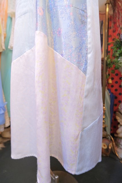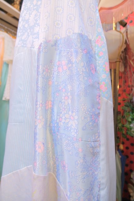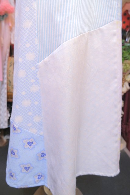 ロマンティックガーリーな1970年代頃のユーロヴィンテージ生地パッチワークデザインが乙女心をくすぐる世界に一つだけのメルヘンワンピース Tシャツやブラウス、ニットなどと合わせると可愛いオールシーズン活躍してくれるガーリーアイテム