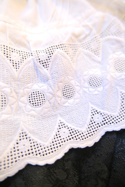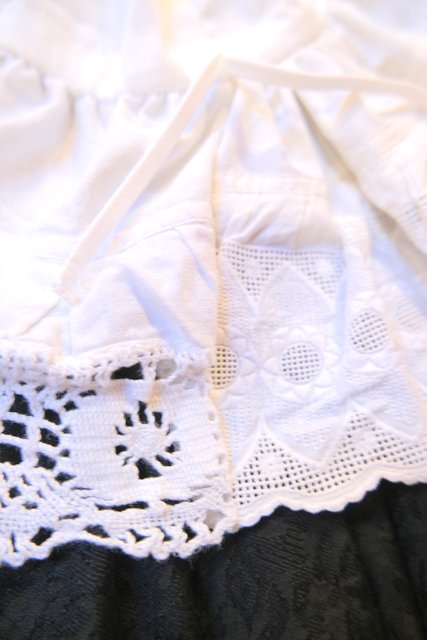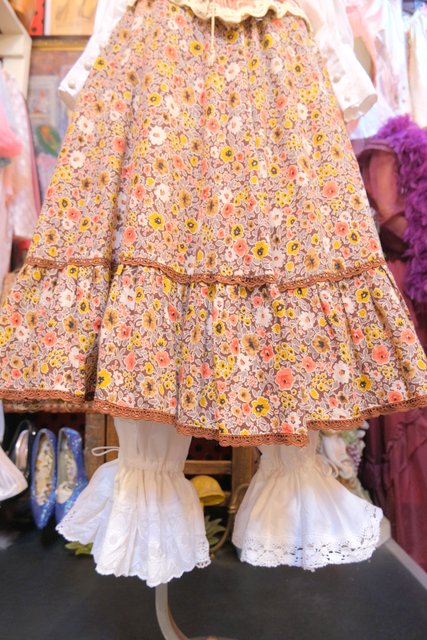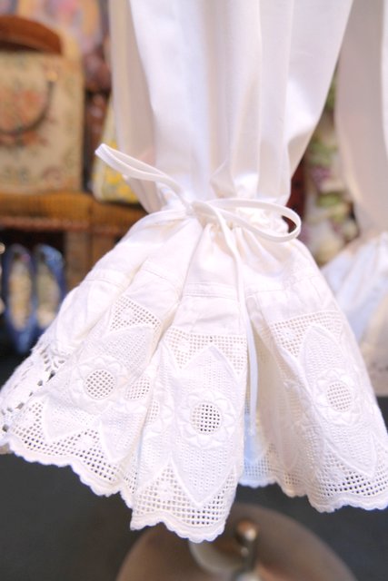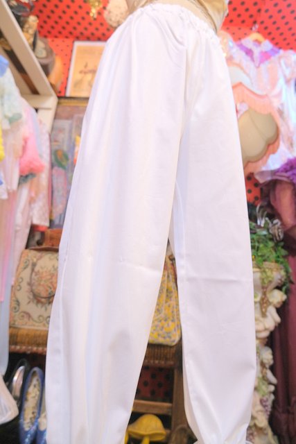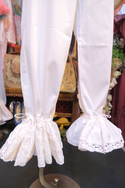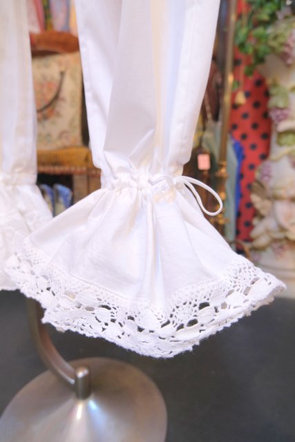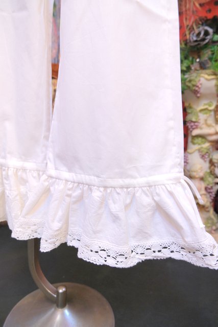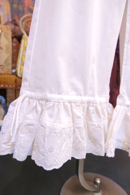 1970年代頃のヴィンテージコットンレースを使用したボリューミーなフリルデザインが魅力的なロマンティックガーリーリメイクパンツ そのまま履いても紐を絞ってドロワーズパンツとしても可愛い大人ガーリーアイテム!
