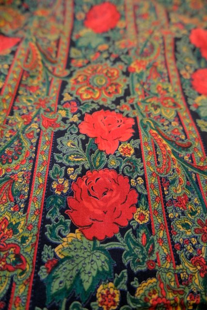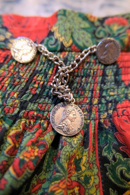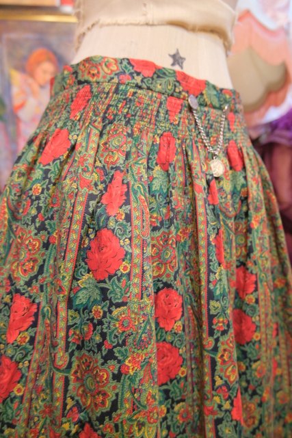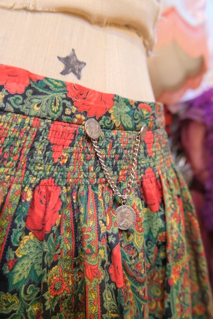 レトロエレガンスな花柄×ペイズリー柄にアンティークコインチェーン付きがお洒落な1980年代頃のヨーロピアンヴィンテージスカート