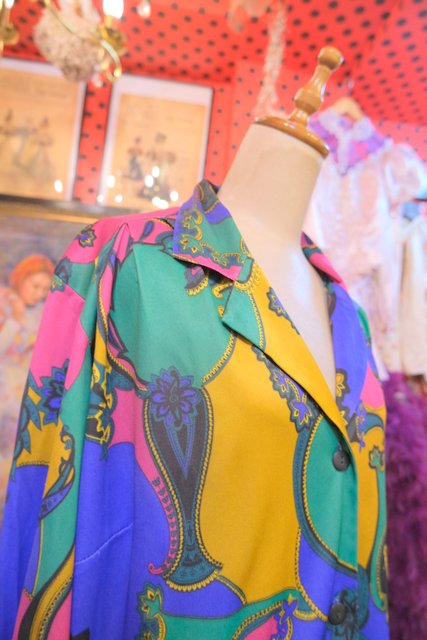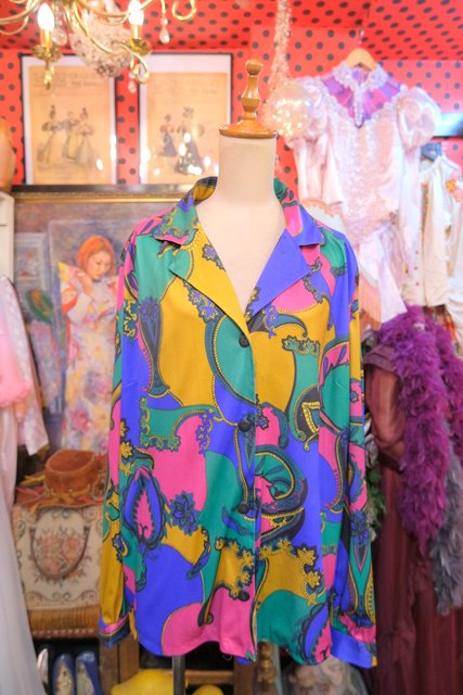 ヨーロッパ古着80sカラフルサイケデリックブラウス