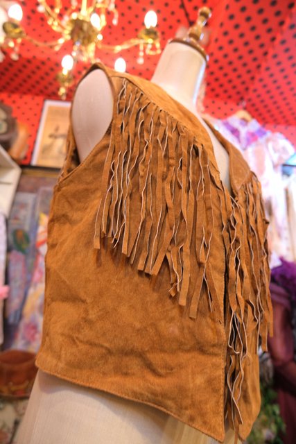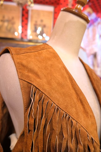 ボヘミアンスタイルにおススメな長めのフリンジやスエードレザーが魅力的な1980年代頃のUSA製ヴィンテージベスト