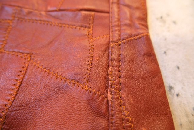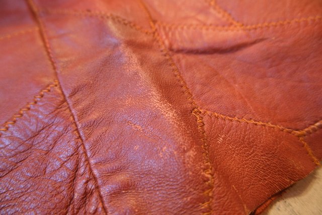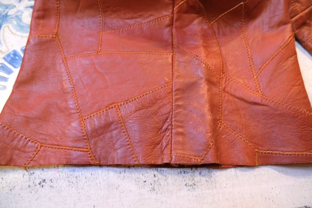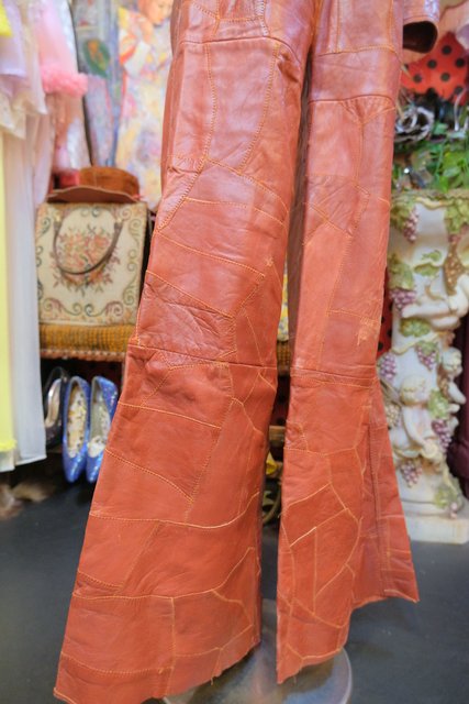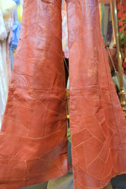 レトロ感たっぷりの本革パッチワークにファスナーポケットや裾にかけて緩やかに広がっているフレアデザインが魅力的な1970年代頃のスペイン製ヴィンテージオールインワン 70s好きにおススメな希少アイテム!