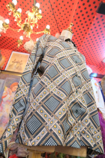 ヨーロッパ古着70sフランス製レトロポップ水玉シャツ