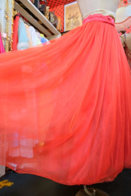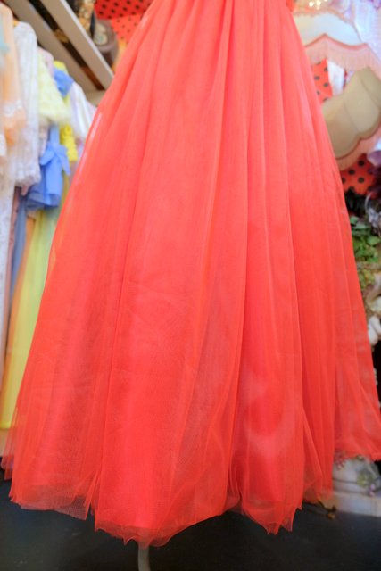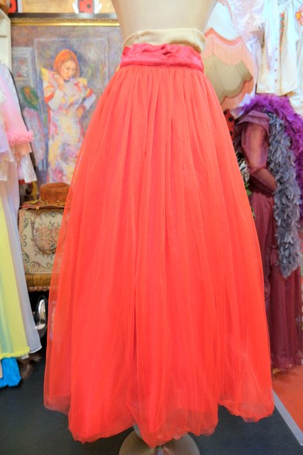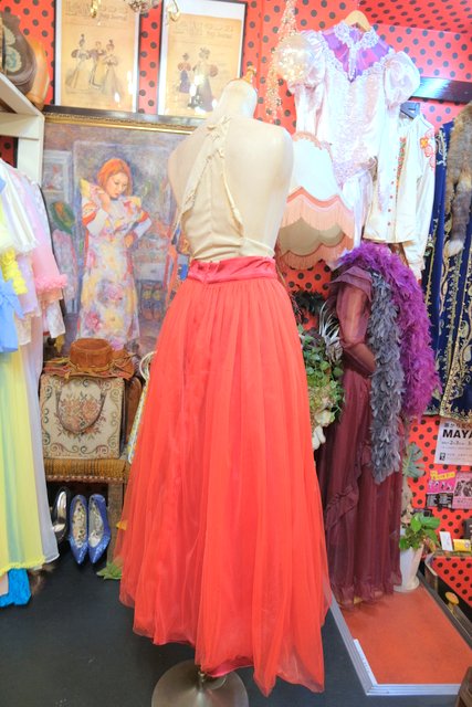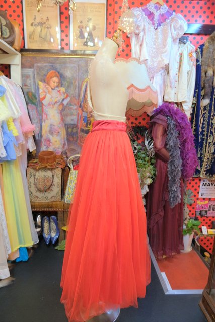 ヨーロッパ古着赤チュールパーティーロングスカート
