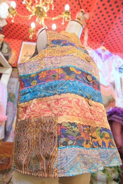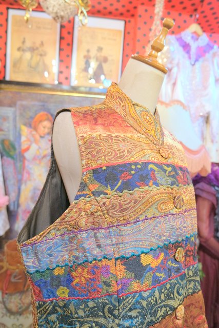 アンティーク感漂うゴブランやペイズリー柄などのパッチワークデザインが魅力的な1980年代頃のヨーロピアンヴィンテージベスト
