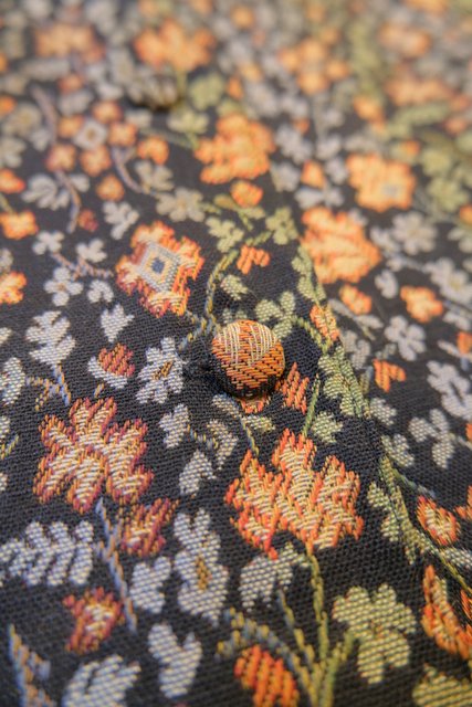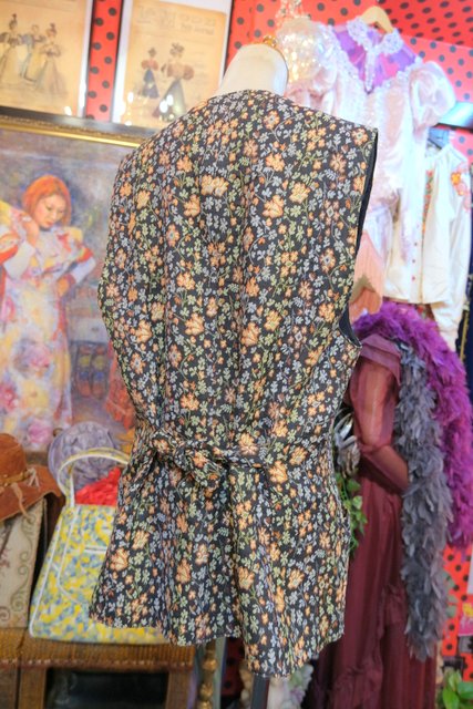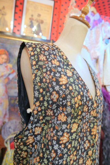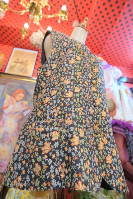 レトロな花柄生地にくるみボタンが可愛らしいヨーロピアンゴブランベスト