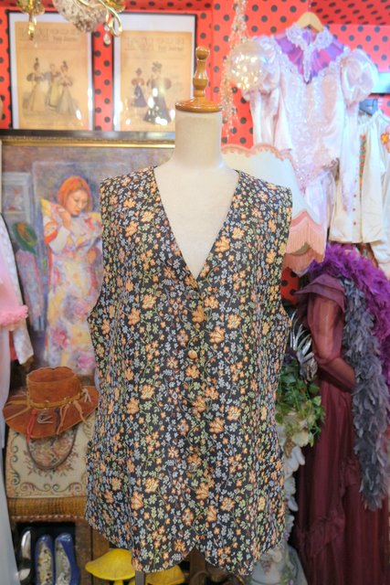 ヨーロッパ古着レトロガーリー花柄ゴブランベスト