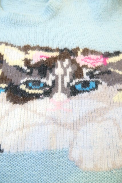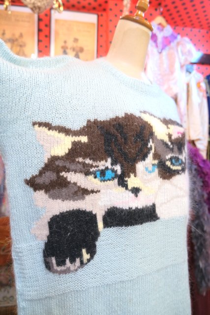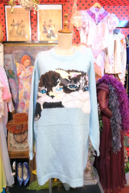 ヨーロッパ古着メルヘンネコ柄ニットワンピース