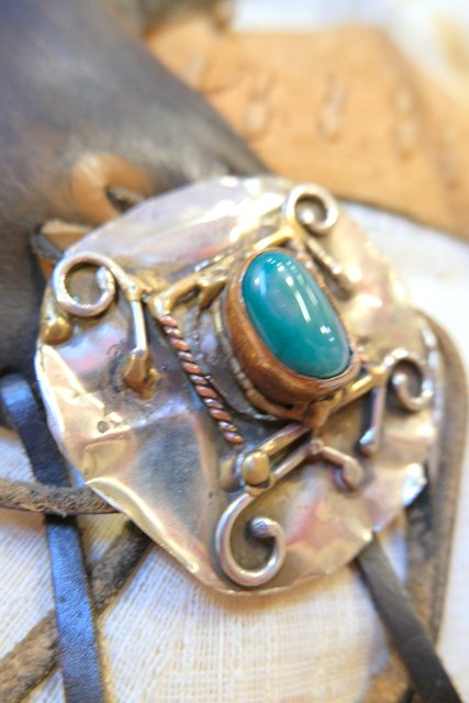 アンティーク感漂う石付きのバックルに革紐やアシンメトリーなデザイン、レザーの風合いが魅力的なヨーロピアンヴィンテージベルト