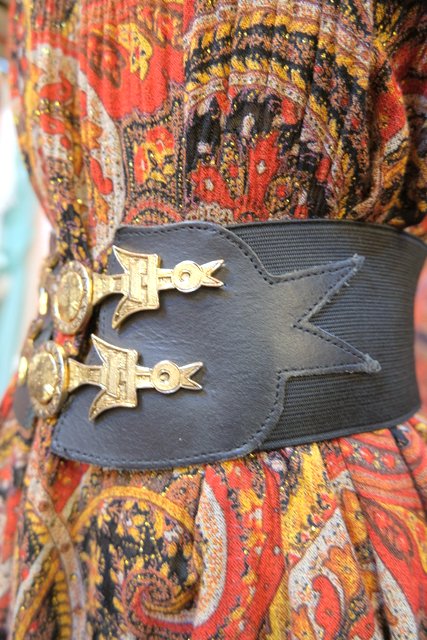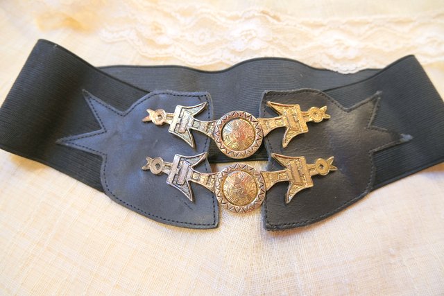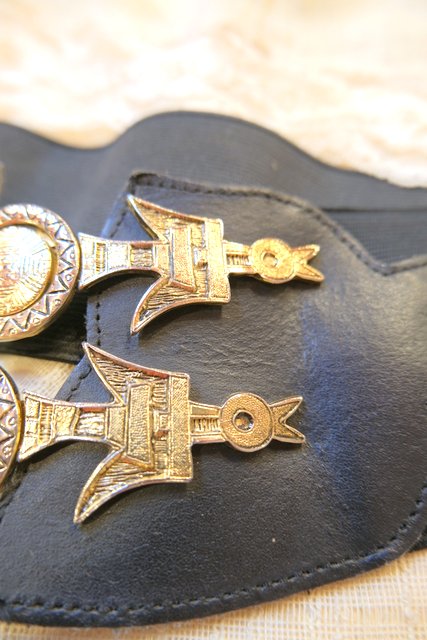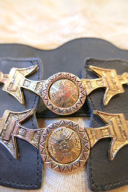 壁画のような幾何学模様入りの鳥バックルがレトロで個性的なヨーロピアンヴィンテージラバーベルト