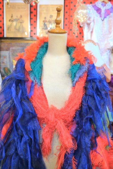 ヨーロッパ古着カラフルフェザーパーティー羽織ベスト