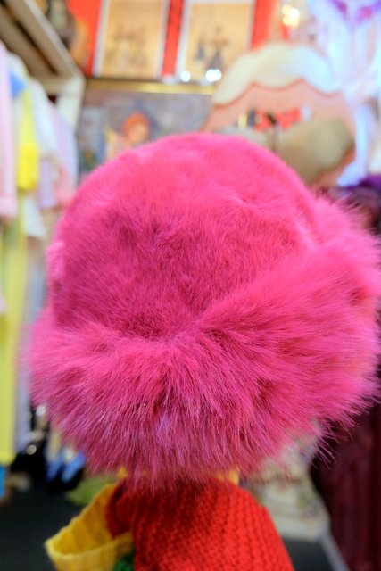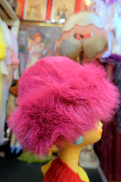 ヨーロッパ古着カラフルポップフェイクファー帽子
