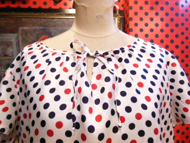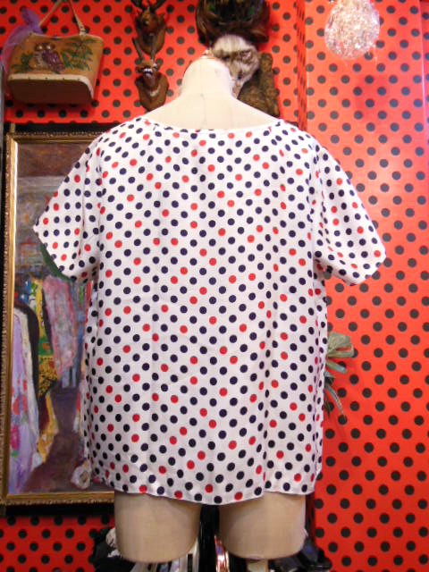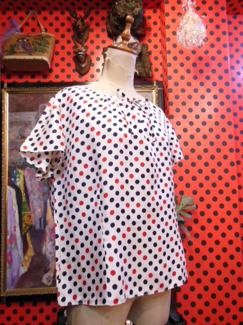 ヨーロッパ古着70sフランス製レトロポップ水玉シャツ