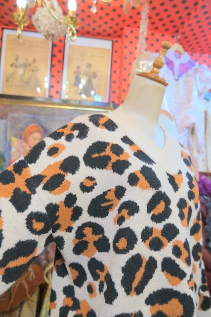 ヨーロッパ古着ファンキーロックヒョウ柄ニット