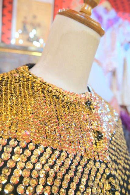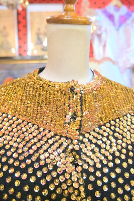 ヨーロッパ古着ゴールドスパンコールニットカーディガン