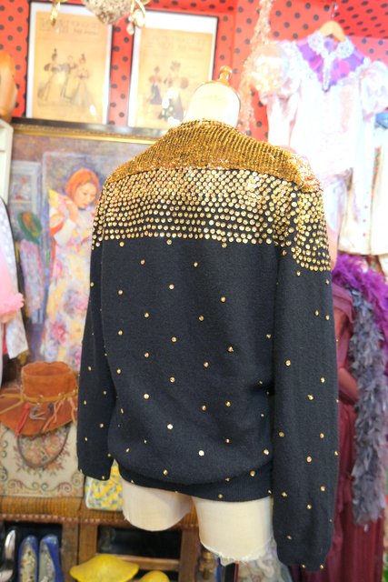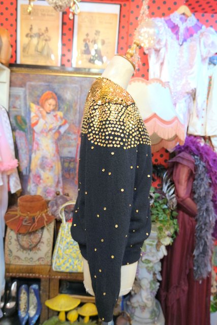 ぎっしり詰まったゴールドスパンコールグラデーションデザインが素敵な1980年代頃のヨーロピアンヴィンテージニットカーディガン
