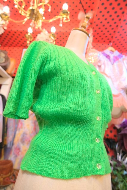 ヨーロッパ古着60sレトロポップ半袖ニットカーディガン