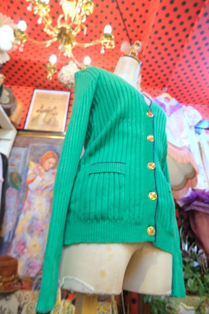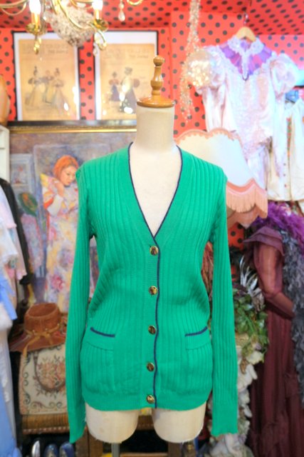 ヨーロッパ古着70sレトロモッズリブニットカーディガン