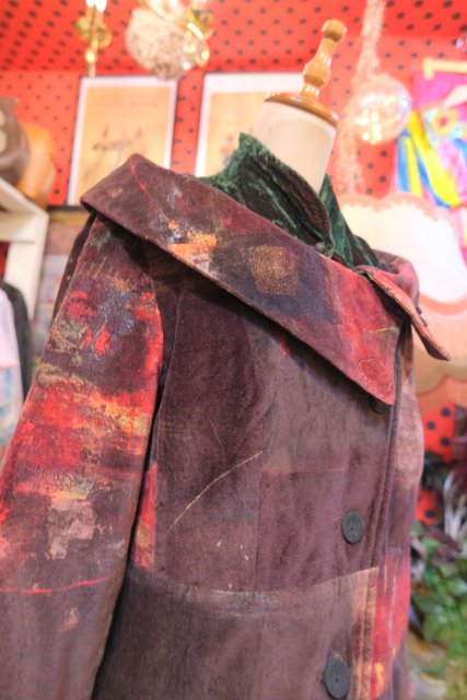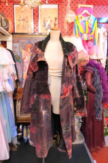 ヨーロッパ古着アートドッキングデザインベロアコート