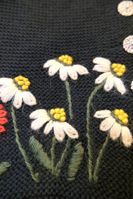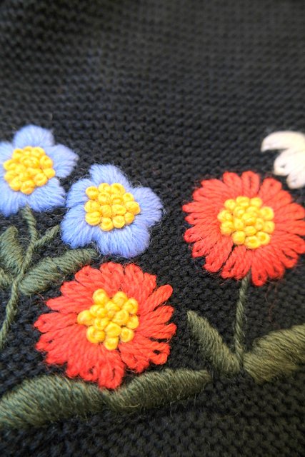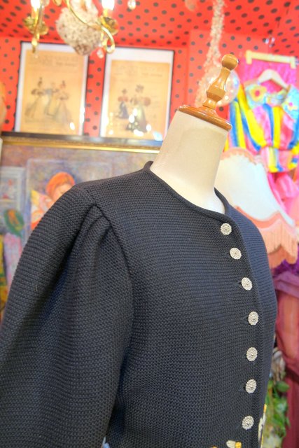 カラフルポップなお花刺繍やボリュームパフスリーブが可愛らしい1970年代頃の旧西ドイツ製ヴィンテージチロルカーディガン